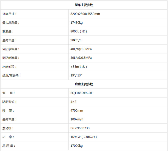 東風8噸消防車和東風7噸消防車是同父同母的雙胞胎車型,都是采用東風D9消防車專用底盤,消防配置一樣采用四零泵炮,區別在于載液量和器材箱的空間,8噸車型載液量多,器材箱空間少,7噸車型恰恰相反。價格方面兩款車的價格相同,在選擇車型的時候,要根據自身的使用情況,挑選合適的車型。